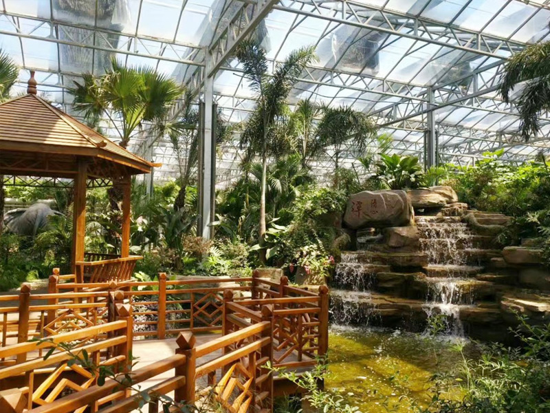 生態(tài)溫室采用輕鋼結(jié)構(gòu)建造,以聚酯板材或玻璃做覆蓋,外觀晶瑩剔透,采光效果佳,環(huán)保、節(jié)能。